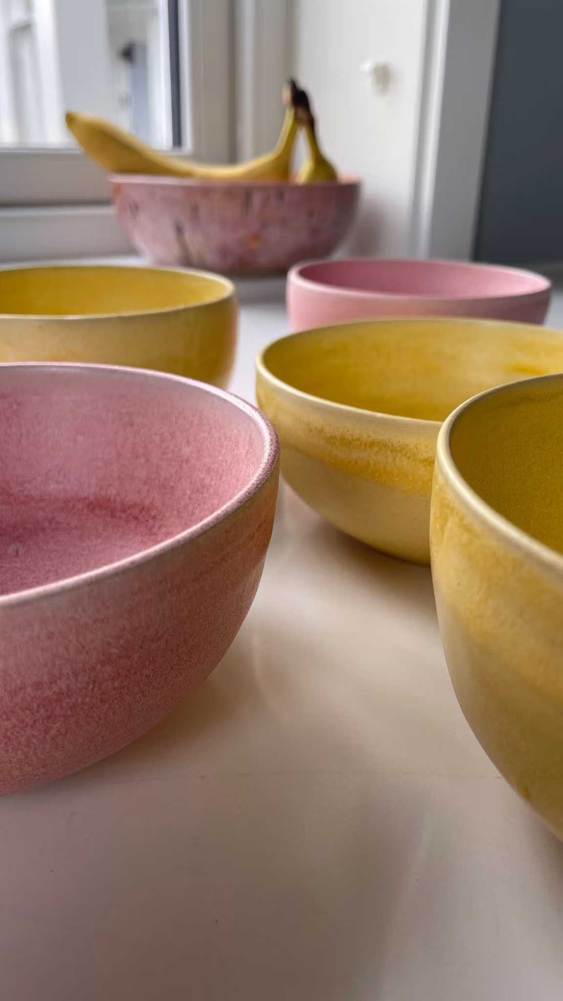 Hånddreid frokostskål i steingods, perfekt til yoghurt, grøt eller bær. Skålene varierer litt i størrelse og uttrykk, noe som gjør hver av dem unik. De fungerer også fint til andre småretter – som snacks, dessert eller tilbehør. En allsidig og sjarmerende skål laget for hverdagsbruk.
