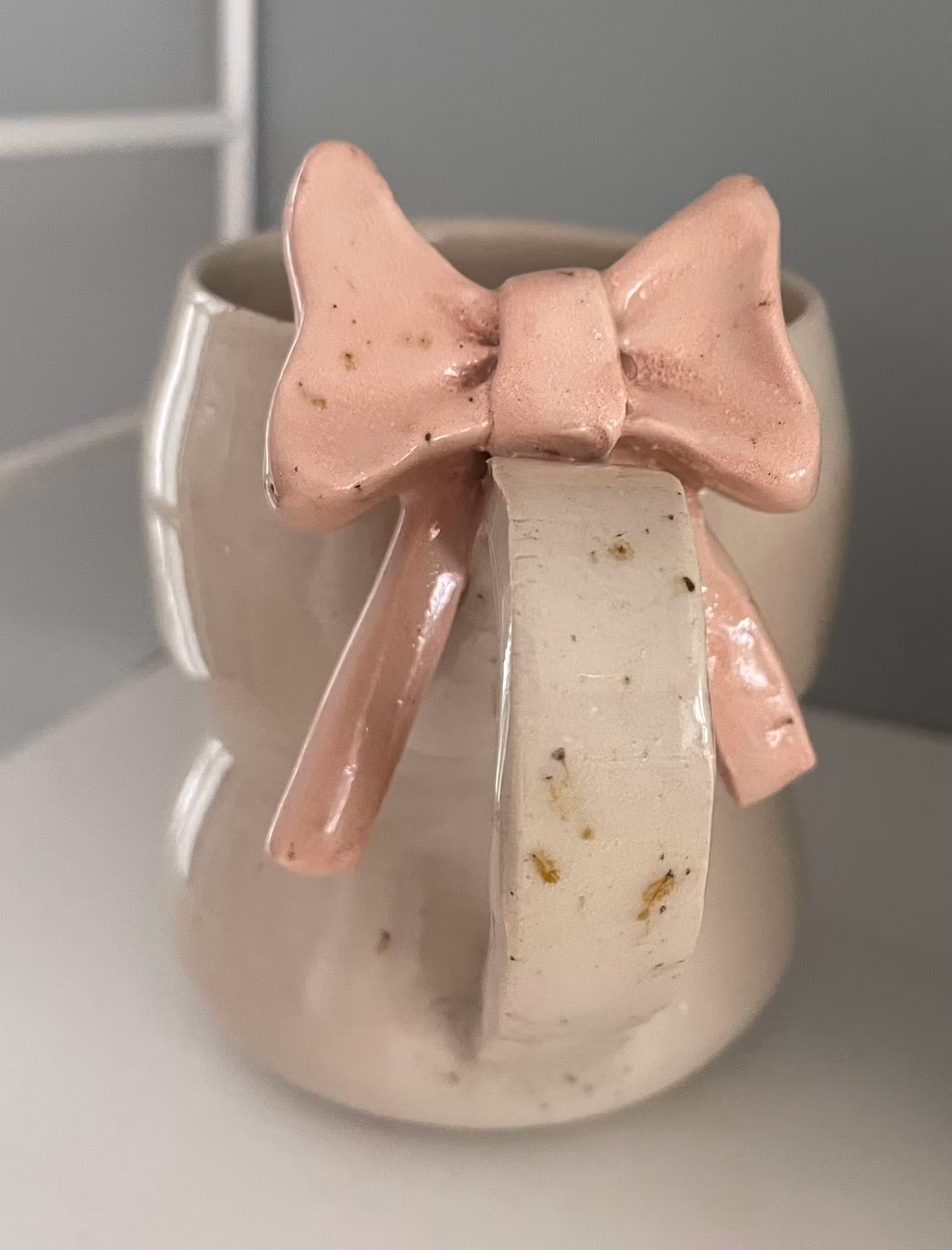 Sløyfekoppene mine er hånddreid i steintøy og glasert i små partier her på verkstedet mitt. Formene kan variere og sløyfene kan være litt ulike. Koppene er ment å være en del av hverdagen din – koppen du drikker morgenkaffen av, som følger deg gjennom arbeidsdagen, eller som står og venter på deg i ettermiddagssolen sammen med en kopp te. Har du en hylle til kopper, kan sløyfekoppen også få stå fremme og pynte blant dine andre keramikkfavoritter.